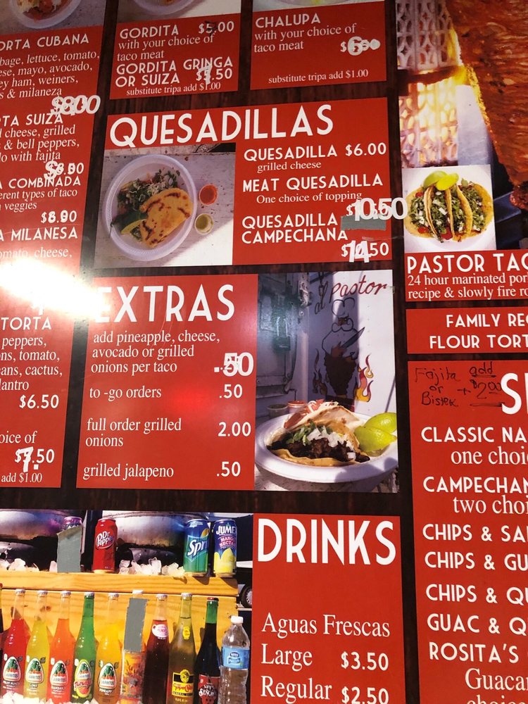 Frilled with al pastor, beans, onions, cilantro, cheese, and avocado.