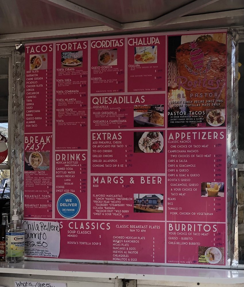 Rosita's al Pastor is a beloved food truck in Austin, TX, offering a variety of Mexican dishes and catering to a diverse range of preferences. From appetizers like Guacamole and Queso Flameado to breakfast options like Huevos Rancheros and Steak & Eggs, the menu boasts flavorful and authentic choices. Customers rave about the Al Pastor Taco, known for its delicious flavor and juicy meat. The atmosphere is described as lively and welcoming, with outdoor seating and quick service. Reviewers appreciate the homemade tortillas and the wide selection of meats available. Overall, Rosita's al Pastor is a must-visit for those craving tasty Mexican cuisine in a vibrant setting.